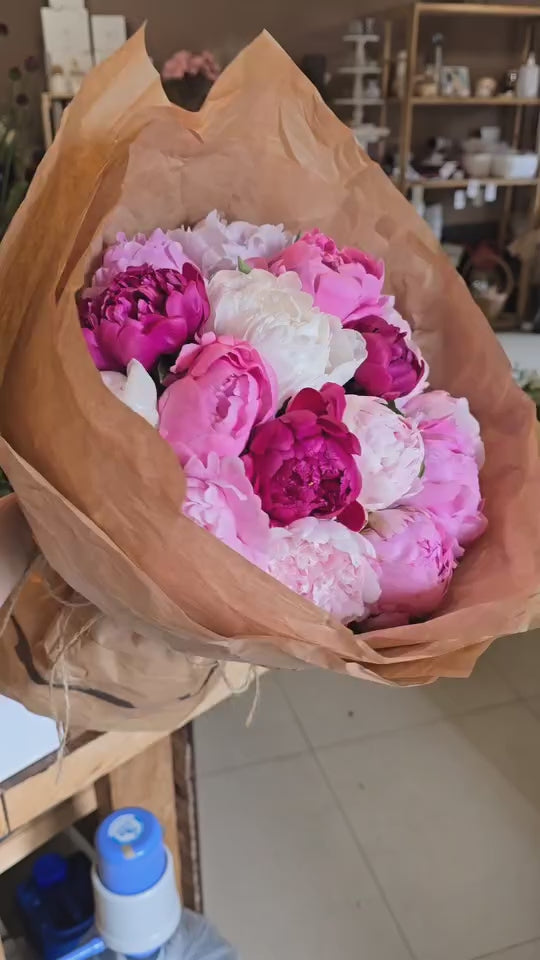 Our Tender Peonies Bouquet is the perfect gift to send your loved ones in Ukraine. The bouquet, designed exclusively for international delivery, will be carefully crafted by a Ukrainian florist and delivered directly to your recipient. Combination of 17 white, light pink and dark pink buds creates an unforgettable impression of tenderness and joy.