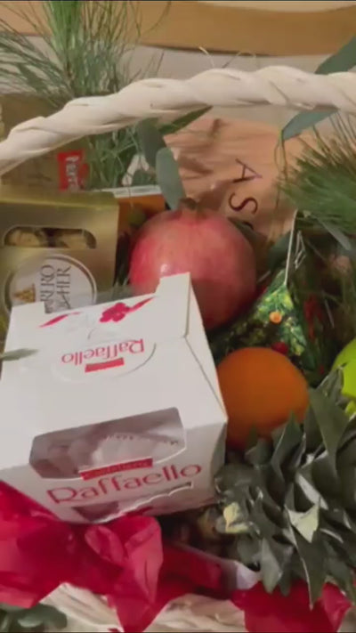 Il y a de quoi savourer ce panier rempli de friandises et de fruits frais juste du Père Noël chez vous. De nombreux délices irrésistibles sont sélectionnés dans ce joli panier-cadeau enveloppé d'un nœud de Noël. En plus des fruits de saison juteux provenant des vergers ukrainiens, il existe des produits de marques populaires dans le monde entier telles que Lindt, Nestlé et Toblerone. Nous avons équilibré ces sélections sucrées pour devenir le cadeau de Noël le plus désirable en cette période des fêtes.