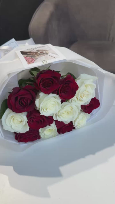 This stylish bouquet will tell about your deepest feelings more than any words. Ukrainian florists combine 7 bright red roses with 6 pure white roses, accented with tender baby's breath to convey a message from your heart. Devotion 13 Roses Bouquet is a perfect gift for Ukrainian woman that will take Her breath away.